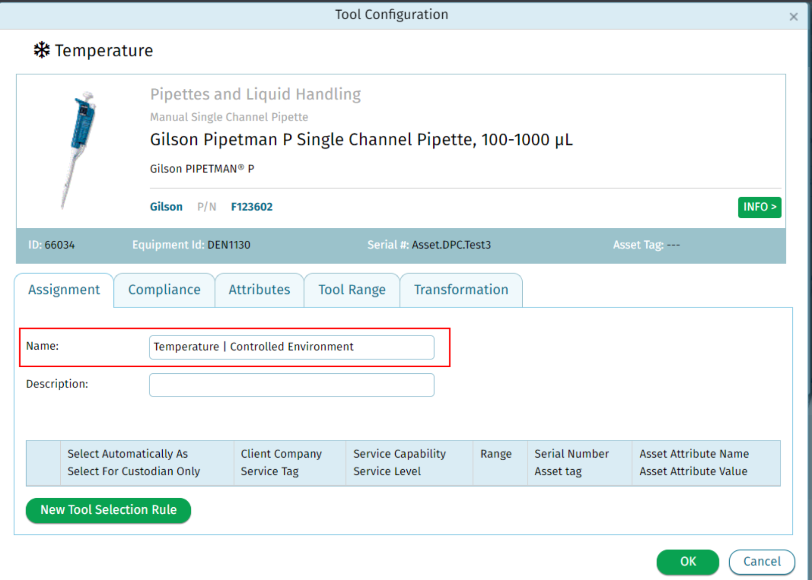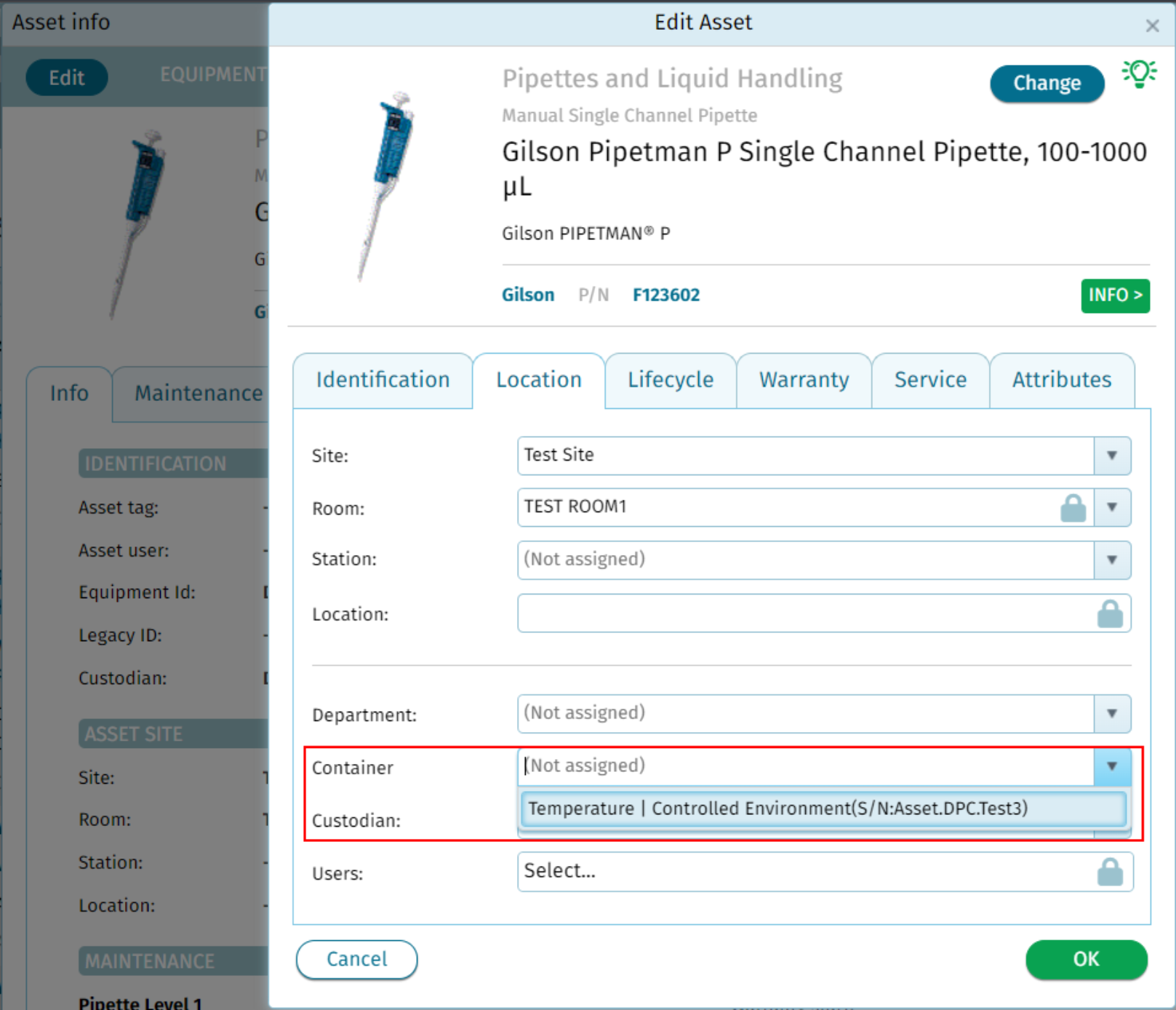 - Click on the Container drop-down and select the appropriate container (e.g., Temperature, Laboratory Freezer).