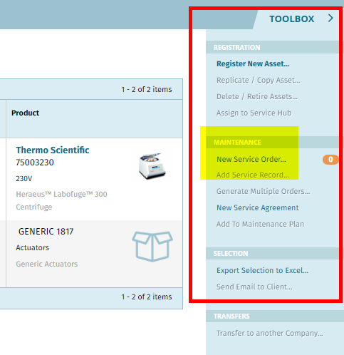 - Click “New Service Order” in the TOOLBOX on the right side of the screen.