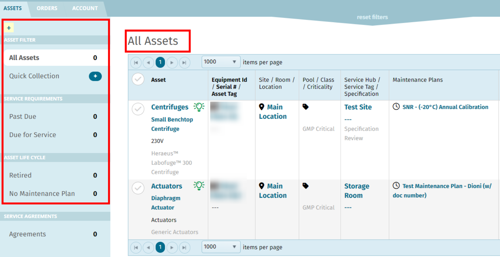 - Select the assets you want to service by clicking the adjacent checkmarks or using the Select All option.