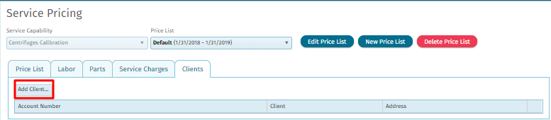 Search for a Client and, when found, click Select. Add as many clients as desired.