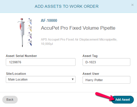 Once found, select the model number, and you will then be prompted to enter basic identifying information about the asset (serial number required), and click "Add Asset":